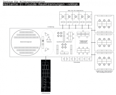 Beauftragt wurde diese Raumkonzept vom The Innovation in Politics Institute, das für die Stadt Wien eine Studie zur Umsetzung des Zentrums für Bildungsinnovation erstellt hat. Für diese Studie wurden Gespräche mit Expert*innen und Praktiker*innen im Bildungsbereich geführt, sowie eine Best Practice Analyse und eine Fokusgruppe durchgeführt. Die Erkenntnisse der Analyse ließen wir in unserem Raumkonzept einfließen. So haben wir unterschiedliche Versionen eines Ortes entworfen, der Initiativen und Organisationen im Bildungsbereich bei der Weiterentwicklung unterstützt, diesen den Zugang zu Entscheidungsträger*innen und Pädagog*innen vereinfacht und als Arbeits-, Informations- und Veranstaltungsraum funktioniert